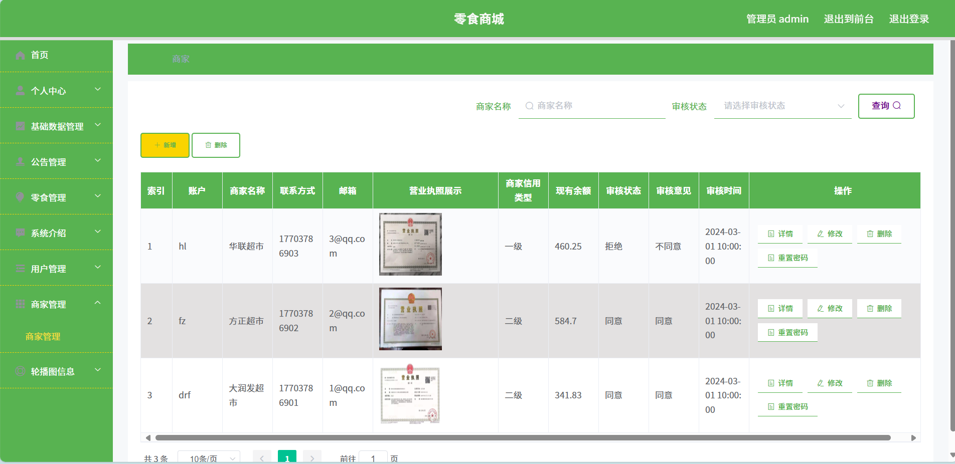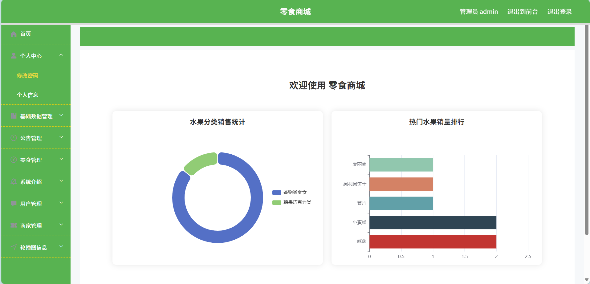 本项目是一款基于 SpringBoot + MyBatis + Vue 开发的 零食商城系统,实现了从商品管理到订单交易的完整购物流程。系统分为 管理员、商家、用户 三种角色,覆盖后台管理与前台购物全流程,适合作为 Java Web 毕业设计、商城类实训项目。
