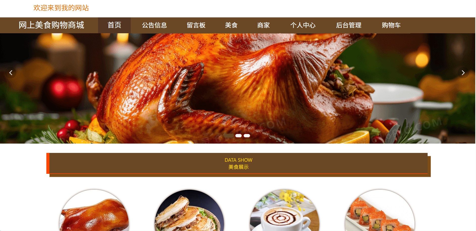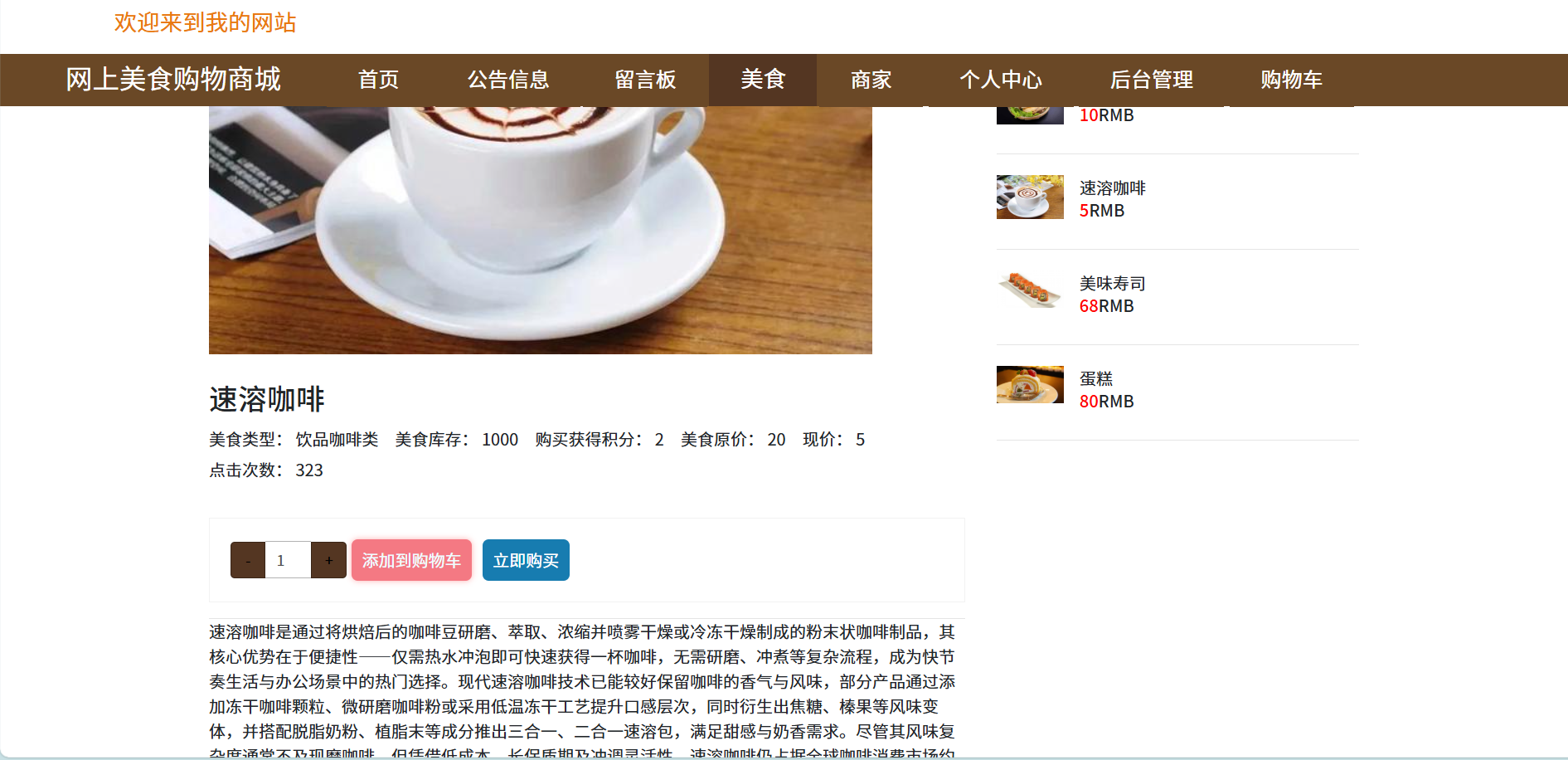 - 前台商城入口:http://localhost:8080/meishishangcheng/front/index.html